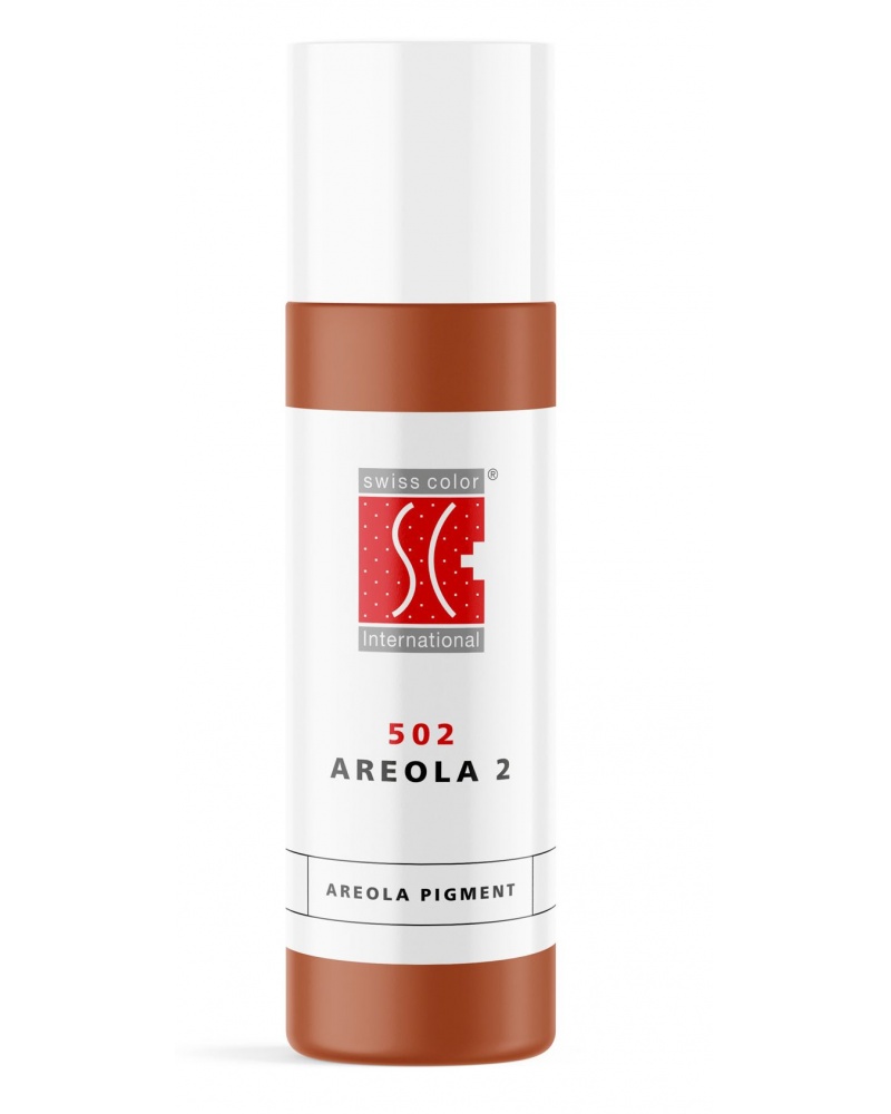PMU pigment 502 Areola 2 v súlade s REACH je teplá tehlovo červená farba so žltými podtónmi na bradavke. Kombinácia 502 Areola 2 a 504 Areola 4 je obľúbeným farebným mixom pre dvorec.