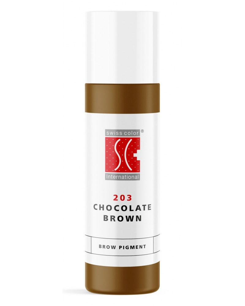 Pigment SW203 Chocolate Brown je jemná stredne hnedá s teplým podtónom. Pre tmavší odtieň farby je možné zmiešať s SW205 Dark Brown. S pridaním SW207 Ebony Brown v malých množstvách môže byť pigmentácia obočia intenzívnejšia. Typ pleti: svetlá, blond, svetlohnedá, svetlá až olivová, olivová, stredne hnedá