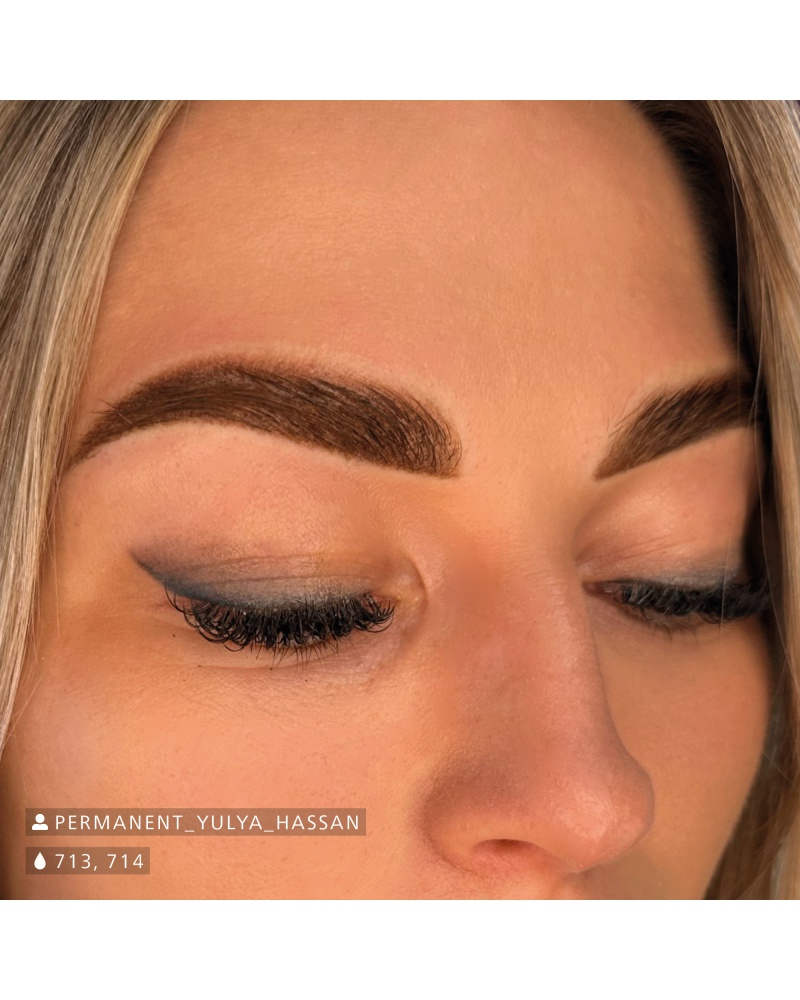 713 Blond Brown zaujme svojim prirodzeným blond odtieňom, vďaka čomu je ideálny pre obočie typu Fitzpatrick I a II. Zmiešaním s 715 Classic Brown sa dá ľahko stmaviť do rôznych odtieňov. Pri paramedicínskej pigmentácii sa 713 Blond Brown často používa na dvorce s bledým alebo žltohnedým podtónom. Vďaka anorganickým zložkám možno tento zmesový pigment ľahko zapracovať do akéhokoľvek typu pleti.