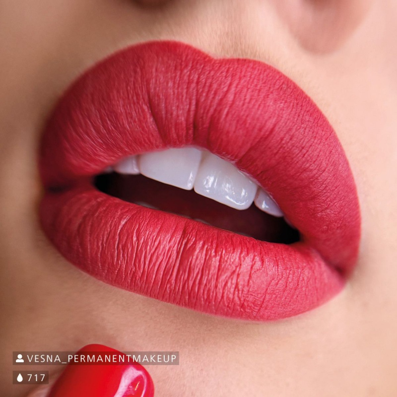 Táto zmes kombinuje dva obľúbené odtiene pier: 403 Passion Berry kisses a 703 Arizona Red, čím vytvára elegantný odtieň palisandrového dreva. Teplý podtón poskytuje svieži ružový efekt, zatiaľ čo nádych umbry dodáva farbe jemný, prirodzený vzhľad. Ideálny pre typy pleti I – IV, vhodný aj pre typ V. 717 Velvet Kiss, keď sa používa čistý, je obľúbený medzi profesionálmi na pigmentáciu pier a je tiež obľúbený ako miešací odtieň na pigmentáciu dvorca.