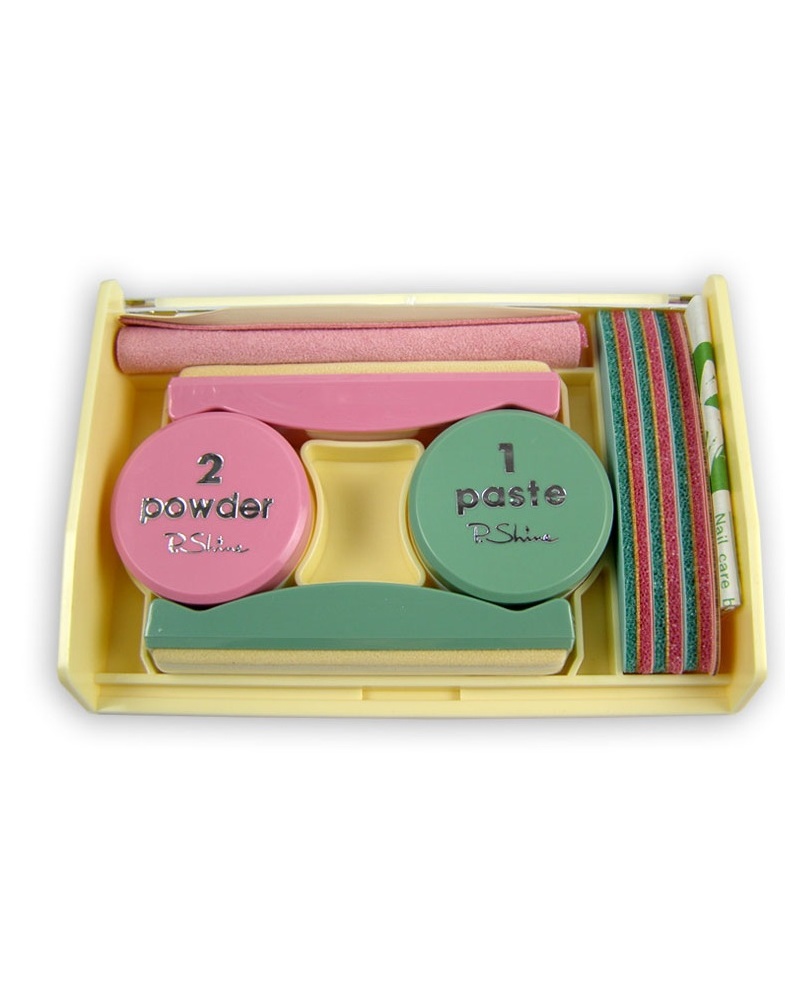 + jelenicová handrička. Japonská manikúra P. SHINE je určená na špeciálnu starostlivosť o prírodne nechty. Prednosti prípravku spočívajú v dlhodobom účinku a nenáročnom udržiavaní stáleho a vysoké lesku ošetrovaného nechtu. Zvyšuje pevnosť a pružnosť nechtov, metabolizmus koreňa nechtu a nechtového lôžka. Pôsobí aj ako prevencia proti lámavosti a štiepeniu nechtu. Sada P. SHINE obsahuje komponenty vyrobené z čistých prírodných látok a ich derivátov. Neobsahuje žiadne organické rozpúšťadlá, farbivá parfumy a ani konzervačné látky. Nachádzajú sa v nej esenciálne lipidy, ktoré majú za úlohu optimálne udržiavať prirodzenú vlhkosť nechta.
