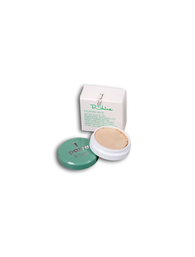 P. Shine pasta 5 g. Obsahuje prírodnú horninu bentonit, špeciálnymi postupmi je modifikovaná tak, aby mala maximálny vyhladzovací účinok na povrchu nechta. V paste sa nachádzajú látky lipidového charakteru dôležité pre zachovanie pružnosti nechta a nechtového lôžka